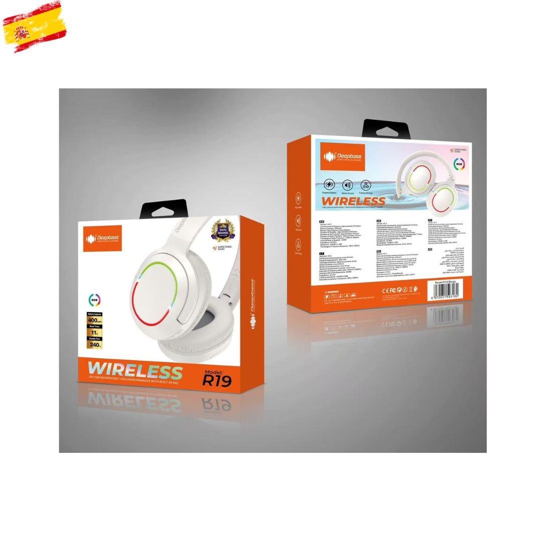 🎧 Deep Bass R19 – Auriculares Inalámbricos Bluetooth V5.3 con Múltiples Funciones y Luces RGB
